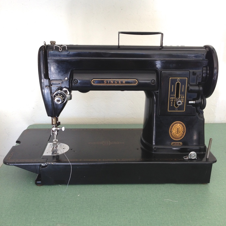 With the Model 301, Singer built an entirely new style of family sewing machine, embodying many exclusive features that simplify operation. Made of die-cast aluminum for light weight and sturdiness, its built-in motor drives the machine through gears at any desired speed.